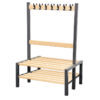 The Premium Cloakroom double Sided bench is a great way to customise and design your School cloakroom for All Ages. Constructed from solid ash and anti-bacterial coated steel frame; this product includes single sided indestructible pegs, slatted bench and storage shoe rack. These units are supplied with floor fixing brackets to ensure a safe and sturdy choice for busy environments.