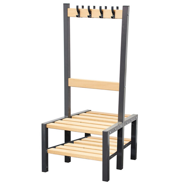 The Premium Cloakroom double Sided bench is a great way to customise and design your School cloakroom for All Ages. Constructed from solid ash and anti-bacterial coated steel frame; this product includes single sided indestructible pegs, slatted bench and storage shoe rack. These units are supplied with floor fixing brackets to ensure a safe and sturdy choice for busy environments.