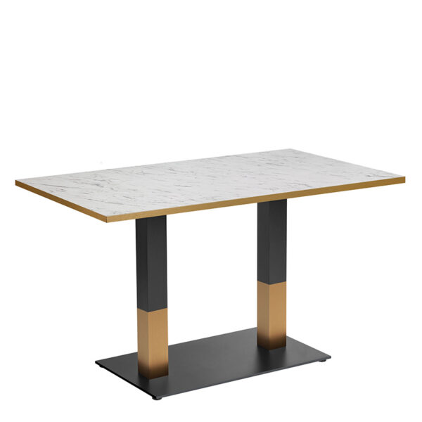 The 25mm contact-grade laminate tabletop delivers exceptional durability while maintaining the refined appearance of White Carrara marble. Finished with a 2mm gold-effect ABS protective edge, the surface is designed to withstand daily knocks, scrapes, and heavy use in busy commercial environments. It is also scratch-resistant, heat-resistant, and easy to clean, making it a practical and low-maintenance solution for high-traffic dining spaces.