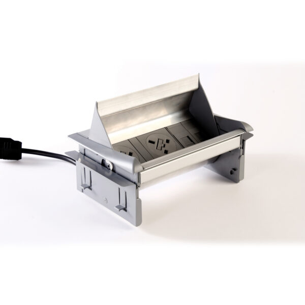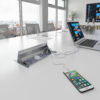 The Aero fliptop in-table power module features 2 UK sockets and 2 RJ45 data sockets in a sleek grey/silver finish. Designed specifically for boardroom tables, it offers convenient power, data, and media connections right where you need them. The flip-top cover easily lifts to provide access and can lie flat when not in use, maintaining a clean and unobtrusive look on the tabletop. Available in various configurations, the Aero module is built to seamlessly connect people with technology, boosting productivity in today’s dynamic workplace environments.