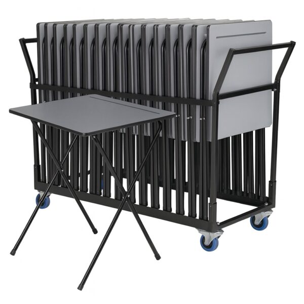 The FT4124 is a robust, easy‑to‑maneuver exam desk trolley supplied complete with 25 standard Grey Zlite exam desks. Designed for safe, secure transport and storage, it features a durable black powder‑coated steel frame and locking rubber castors for enhanced stability. Manufactured in the UK, the unit arrives flat packed with clear, easy‑to‑follow assembly instructions.