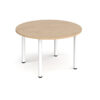 Radial leg tables offer a clean, minimalist aesthetic with a simple leg design that creates versatile spaces for collaboration, creativity, or focused work. Their round tubular legs screw directly into the tabletop, delivering a robust yet refined structure that suits a wide range of environments. Available in chrome, silver, black, and white, the legs pair seamlessly with 25mm scratch-resistant tops, which feature impact-resistant ABS edging for added durability. These modular tables support multiple configurations and come in a broad palette of finishes including beech, oak, grey oak, Kendal oak, Barcelona walnut, light grey, onyx grey, black, and white—making them adaptable to any meeting space or design scheme.