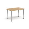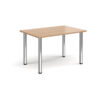 Radial leg tables offer a clean, minimalist aesthetic with a simple leg design that creates versatile spaces for collaboration, creativity, or focused work. Their round tubular legs screw directly into the tabletop, delivering a robust yet refined structure that suits a wide range of environments. Available in chrome, silver, black, and white, the legs pair seamlessly with 25mm scratch-resistant tops, which feature impact-resistant ABS edging for added durability. These modular tables support multiple configurations and come in a broad palette of finishes including beech, oak, grey oak, Kendal oak, Barcelona walnut, light grey, onyx grey, black, and white—making them adaptable to any meeting space or design scheme.