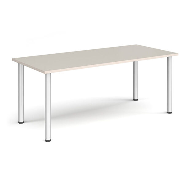 Radial leg tables offer a clean, minimalist aesthetic with a simple leg design that creates versatile spaces for collaboration, creativity, or focused work. Their round tubular legs screw directly into the tabletop, delivering a robust yet refined structure that suits a wide range of environments. Available in chrome, silver, black, and white, the legs pair seamlessly with 25mm scratch-resistant tops, which feature impact-resistant ABS edging for added durability. These modular tables support multiple configurations and come in a broad palette of finishes including beech, oak, grey oak, Kendal oak, Barcelona walnut, light grey, onyx grey, black, and white—making them adaptable to any meeting space or design scheme.