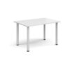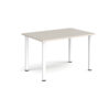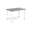 Radial leg tables offer a clean, minimalist aesthetic with a simple leg design that creates versatile spaces for collaboration, creativity, or focused work. Their round tubular legs screw directly into the tabletop, delivering a robust yet refined structure that suits a wide range of environments. Available in chrome, silver, black, and white, the legs pair seamlessly with 25mm scratch-resistant tops, which feature impact-resistant ABS edging for added durability. These modular tables support multiple configurations and come in a broad palette of finishes including beech, oak, grey oak, Kendal oak, Barcelona walnut, light grey, onyx grey, black, and white—making them adaptable to any meeting space or design scheme.