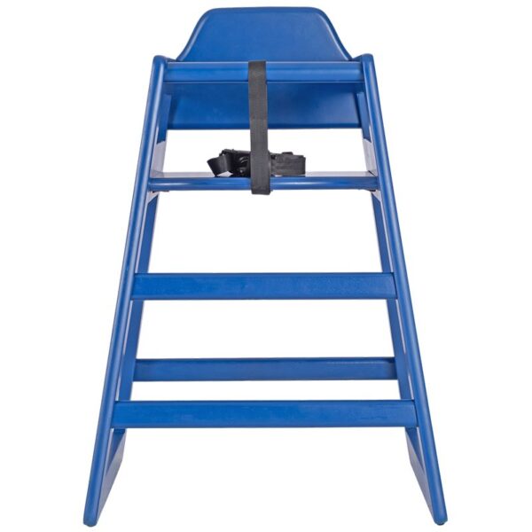 The Bambino Wooden Stackable Baby High Chair is Crafted from solid rubberwood and finished with a bright blue hue, specifically designed for babies and toddlers up to 36 months old, providing a secure and comfortable seating option as they embark on their journey of discovering new flavors and textures. The adjustable waist strap and safety harness guarantee your child’s utmost safety. Cleanup time can be a breeze for busy restaurants, thanks to the wipeable finish of this high chair. Simply grab a damp cloth, wipe away any mess, and voila! It’s as good as new, ready for the next mealtime adventure. Say goodbye to cluttered spaces and hello to convenient storage options as this high chair allows you to stack up to four high.