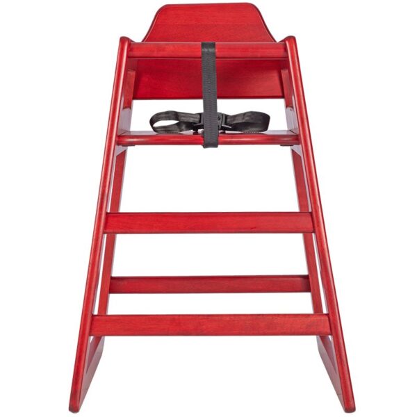 The Bambino Wooden Stackable Baby High Chair is Crafted from solid rubberwood and finished with a bright red hue, specifically designed for babies and toddlers up to 36 months old, providing a secure and comfortable seating option as they embark on their journey of discovering new flavors and textures. The adjustable waist strap and safety harness guarantee your child’s utmost safety. Cleanup time can be a breeze for busy restaurants, thanks to the wipeable finish of this high chair. Simply grab a damp cloth, wipe away any mess, and voila! It’s as good as new, ready for the next mealtime adventure. Say goodbye to cluttered spaces and hello to convenient storage options as this high chair allows you to stack up to four high.