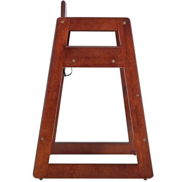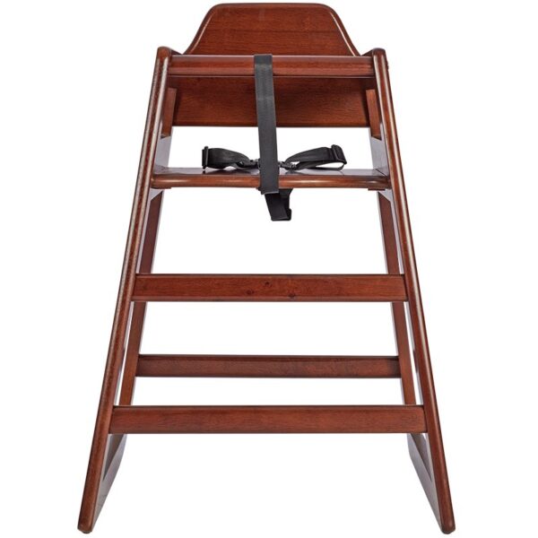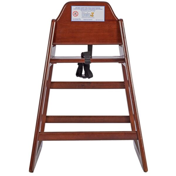 The Bambino Wooden Stackable Baby High Chair is Crafted from solid rubberwood and finished with a rich walnut hue, specifically designed for babies and toddlers up to 36 months old, providing a secure and comfortable seating option as they embark on their journey of discovering new flavors and textures. The adjustable waist strap and safety harness guarantee your child’s utmost safety. Cleanup time can be a breeze for busy restaurants, thanks to the wipeable finish of this high chair. Simply grab a damp cloth, wipe away any mess, and voila! It’s as good as new, ready for the next mealtime adventure. Say goodbye to cluttered spaces and hello to convenient storage options as this high chair allows you to stack up to four high.