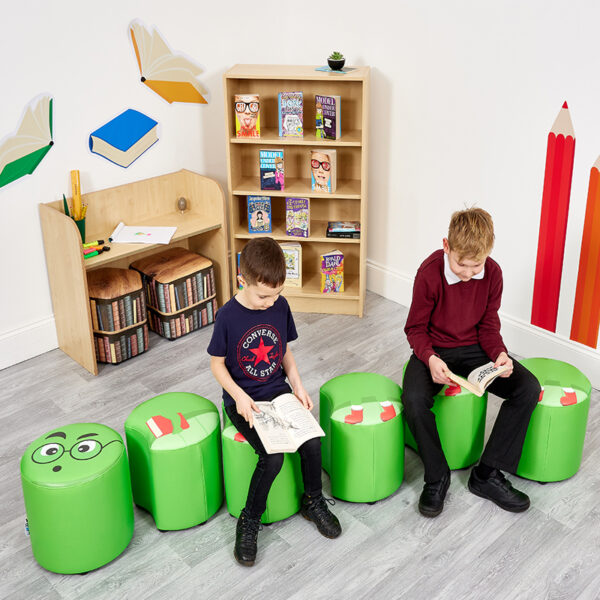 The vibrant colors and fun caterpillar design is perfect for any early years environment, and the durable, soft polyester anti-microbial construction is easy to clean and maintain.  These fun seats are safe for children and built to last. With a bright caterpillar design, they’ll love spending time in their very own little nook. So why not give them a cozy place to curl up with a good book or work on a new project? Order your set today!