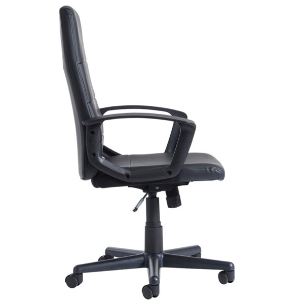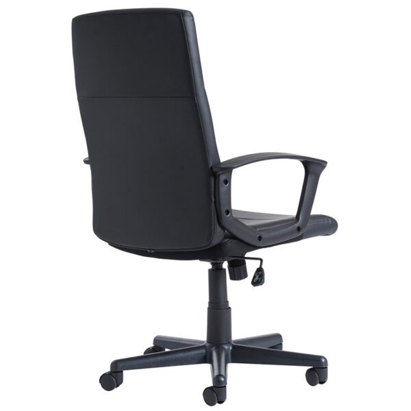 The Ascona High Back Manager’s Chair in black faux leather blends executive style with ergonomic comfort, making it a smart addition to any professional workspace. Upholstered in high-quality synthetic leather and PVC, it features a double-padded seat, integrated headrest, and fixed padded armrests for all-day support. The chair is mounted on a durable black nylon five-star base with smooth-rolling castors for easy mobility. With gas lift height adjustment and weight tension control, the Ascona offers tailored comfort and reliable performance in demanding office environments