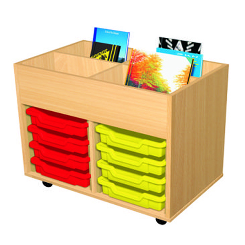 This 8 tray combination school book trolley is a high quality, UK manufactured unit. This Unit consists of 4 book wells and 8 shallow Gratnells trays that are available in a range of colours. These units can be used in different educational environments especially great for libraries, classrooms as well as reception areas.