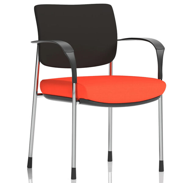 Refine your meeting spaces with the Brunswick Deluxe Visitor Chair, crafted for comfort and contemporary appeal. Its generously proportioned backrest and deeply cushioned seat provide enduring support during extended sessions, while the wave-inspired armrests introduce a modern design accent. The lightweight fabric-back version features a breathable padded cloth seat, durable polyurethane armrests, and a sleek black frame. Available in eight bespoke colours to complement any interior palette, and stackable up to four high, it’s a smart, space-saving solution for offices that value both style and functionality.