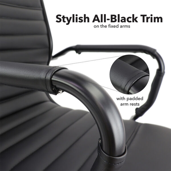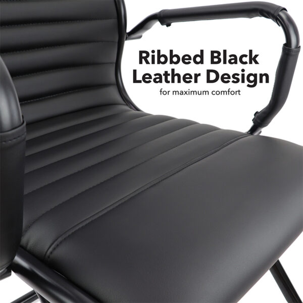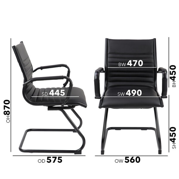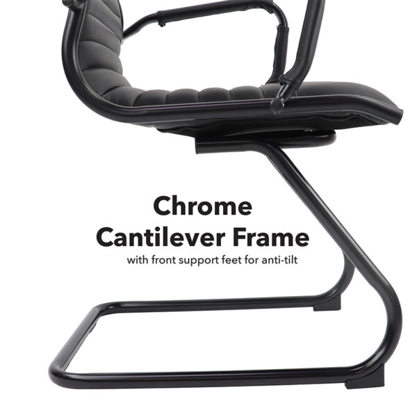 is its matching black armrests and cantilever frame. The sturdy design not only provides a modern touch but also ensures stability and longevity – giving you complete peace of mind when investing in this premium visitor chair.