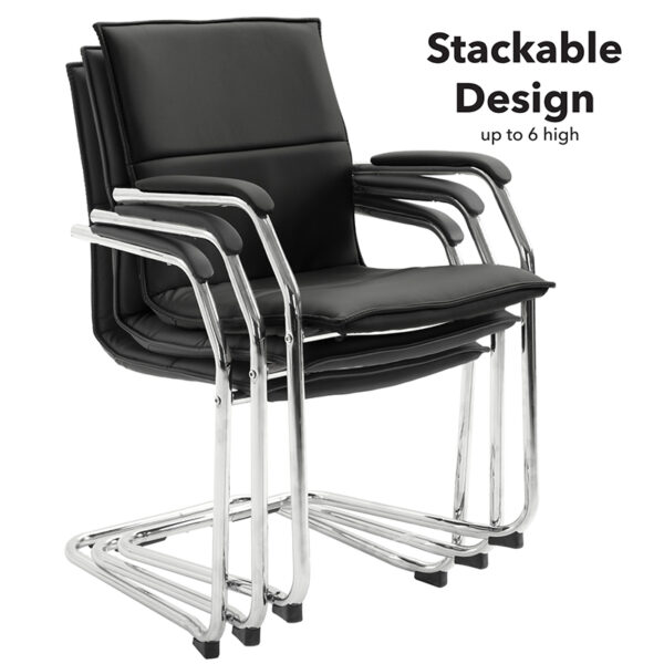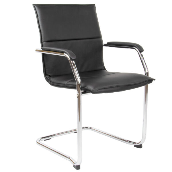 The Leo Black Faux Leather Cantilever Visitor Office Chair is your reliable office companion that offers undeniable style and practicality. With its exceptional design, it is undoubtedly an ideal choice for any workspace aiming to impress.