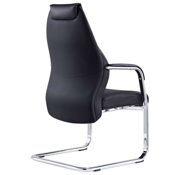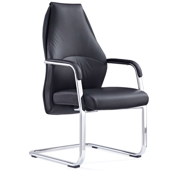 The Mien High Back Cantilever Visitor Chair in black faux leather combines executive style with everyday comfort. Its fixed armrests, finished with bonded leather sleeves, offer supportive resting points while enhancing the chair’s sleek chrome frame. A generously cushioned seat delivers a plush, supportive feel, making it ideal for extended use in meeting rooms, reception areas, or client-facing spaces. With its high backrest and clean lines, Mien brings a refined presence to any professional setting