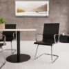 Discover the ultimate in executive comfort and contemporary style with the Enzo Black Faux Leather Cantilever Visitor Chair with Arms. Hailing from the prestigious design hub of Milan, the Enzo chair combines the perfect balance of elegance and durability to cater to the needs of discerning office users.