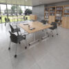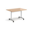 Flip top tables offer a smart, flexible solution for conference rooms, offices, meeting spaces, and training environments, allowing quick and effortless room reconfiguration. Designed with a user-friendly thumb wheel release mechanism, these tables deliver dependable performance while maximizing space efficiency and minimizing cost. When not in use, they fold down smoothly and roll away for compact storage. The simple release system ensures a seamless flipping action, while 25mm tops are available in a wide range of finishes including beech, Barcelona walnut, grey oak, Kendal oak, oak, white, black, light grey, and onyx grey. Each table features a silver-finished leg frame with straight foot rails, and modular design options with lockable castors support versatile layouts tailored to any workspace.