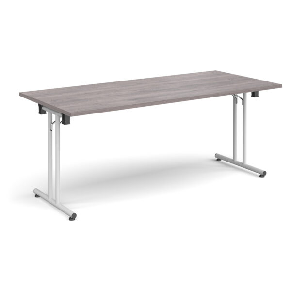 Folding Conference Table – 1800mm x 800mm, White Frame with Straight Foot Rails