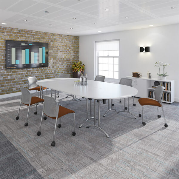 Semi Circular Folding Leg Meeting Table with Curved Feet – 1600mm x 800mm – Black Frame