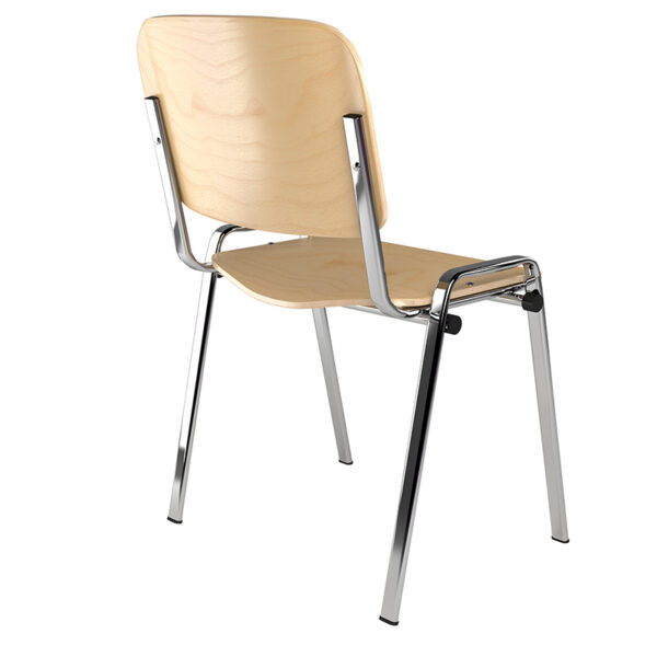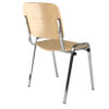 Taurus meeting and stacking chairs offer a sleek, supportive seating solution for offices, training rooms, and educational spaces. This armless model features a wood-finish seat and back in a traditional conference style, combining durability with a clean, professional look. The contoured design provides ergonomic comfort, while the polished chrome oval tube frame adds a refined touch. Ideal for multi-seating environments, Taurus chairs can be used individually or linked in rows with a bracket. They stack up to six high for efficient storage and include plastic feet to protect flooring and maintain stability.