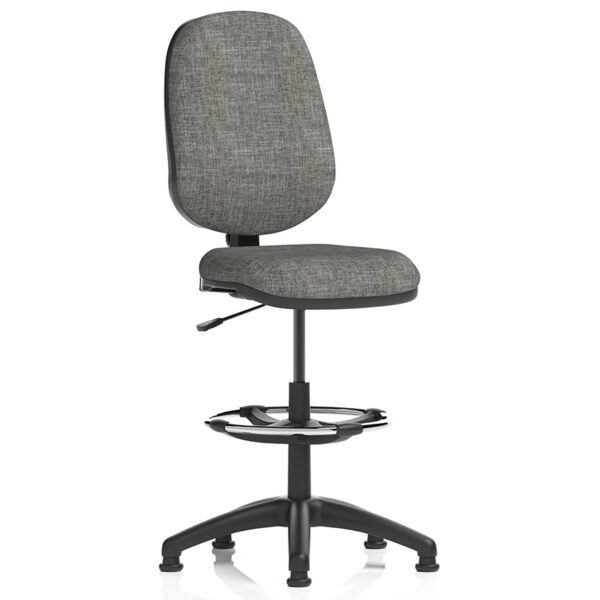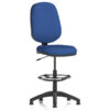 The Eclipse Plus I Lever Draughtsman Chair builds on this functionality with a padded fabric seat and contoured backrest for enhanced support. It features adjustable seat depth and backrest positioning, along with a height-adjustable foot ring for ergonomic posture at elevated workstations. Glides replace castors to ensure stability on taller chairs, making it ideal for drafting tables and counter-height setups.