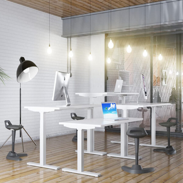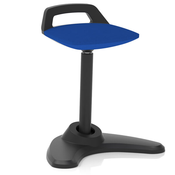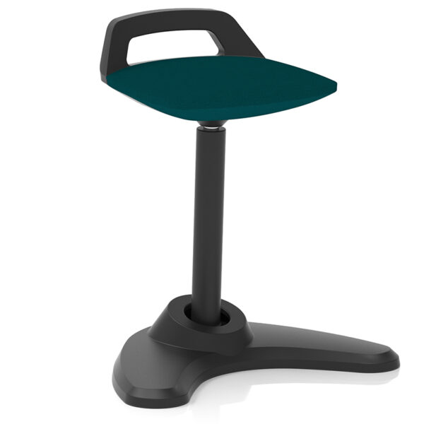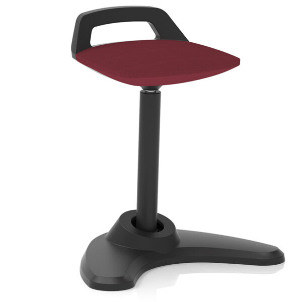 The Spry Sit/Stand Stool is a cleverly engineered seating solution built for flexibility and movement. Ideal for sit/stand workspaces or anywhere a dynamic posture is needed, its distinctive angled central column rocks and tilts to promote ergonomic motion. Finished with a sleek black frame and a bespoke upholstered cushion seat, Spry combines style with function. It features a grab handle and kicker-style back support for added control, dual arm foot stability for balance, and an extended gas lift to accommodate a wider range of heights. The pivoting base enhances mobility, making Spry a smart choice for active environments.