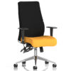 The Onyx chair is a modern, ergonomically designed office chair built for comfort, support, and long-term use. Engineered with a multi-functional asynchronous mechanism, it offers precise adjustment options to suit individual posture needs. The contoured foam seat and back provide enhanced support, making it an excellent choice for task-intensive environments. Available in black or blue fabric and Soft Bonded Leather finishes, the Onyx also offers a bespoke colour seat option and an optional headrest for added versatility. Key features include a seat slide, ratchet back height adjustment, adjustable arms, a 3-lever mechanism, and pump-up lumbar support—making it ideal for 24-hour seating applications.