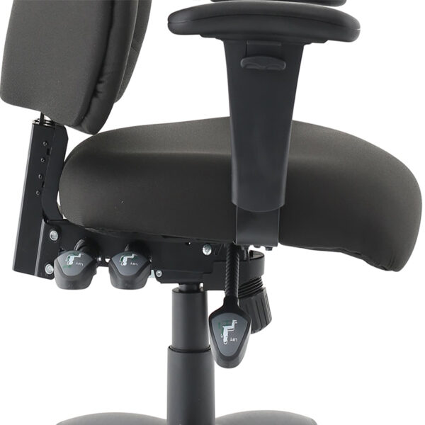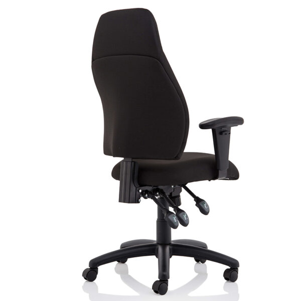 The Esme chair blends performance, modern styling, and ergonomic support, making it a popular choice for busy office environments. Its sculptured seat and contoured back with kidney shaping are designed to promote healthy posture and lasting comfort throughout the day. Featuring a height-adjustable ratchet back, tilt action, and fully adjustable back angle, the Esme adapts to individual needs with ease. Height-adjustable arms add flexibility, while the posture-shaped backrest aligns naturally with the spine for optimal support. Upholstered in black fabric, this chair delivers both durability and refined functionality