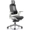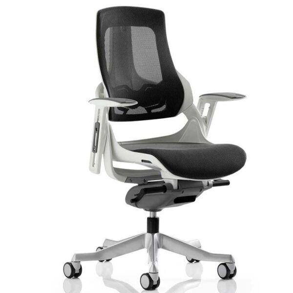 The Zure Task Office Chair redefines ergonomic seating with bold design and bespoke comfort. Engineered with an orthopaedic frame and a large, contoured seat and backrest, it delivers exceptional support for long hours at the desk. The synchronised glide tilt mechanism and anti-shock tilt function ensure smooth, responsive movement, while the depth-adjustable lumbar support and height-adjustable backrest allow for tailored posture alignment. Multi-function arms—both height adjustable and pivoting—enhance flexibility, and the polished aluminium base features highlighted castor detailing for a sleek finish. Available in a range of bespoke seat colours and finishes including fine mesh, full or partial upholstery, and flexible elastomer, the Zure wraps you in touch-point technology with a high-quality outer skeleton. Fabric and leather options include padded armrests for added comfort, while elastomer versions feature colour-coded arm detailing for a modern edge. This is not just a chair—it’s a destination in comfort and style.