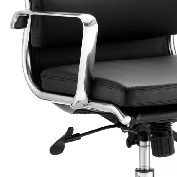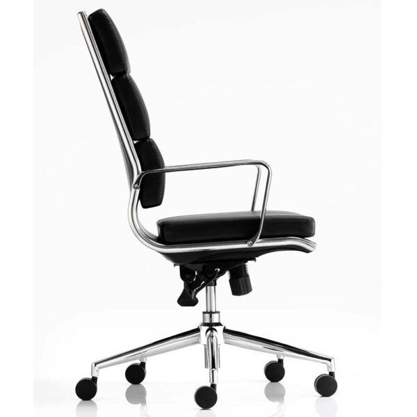 The Savoy Executive High Back Chair brings refined elegance to any professional setting. Its clean, symmetrical split backrest cushions are deeply padded for lasting comfort, upholstered in soft bonded leather that adds a premium touch. The chair features a twin-lever infinite lock mechanism and weight tilt tension control for personalised support throughout the day. A chrome-detailed five-star base and frame are complemented by fixed brushed aluminium arms, creating a sophisticated blend of style and function that enhances boardrooms, executive offices, and client-facing spaces