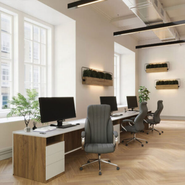 Upgrade your workspace with our PU Executive Office Chair, designed for lasting comfort and durability. The S-style ergonomic backrest encourages healthy posture, while the padded seat and armrests provide all-day support. Built with a sturdy frame and a sleek, easy-clean leather-look finish, it features a smooth butterfly mechanism for seamless height and tilt adjustments. A smart choice for style, comfort, and everyday performance.