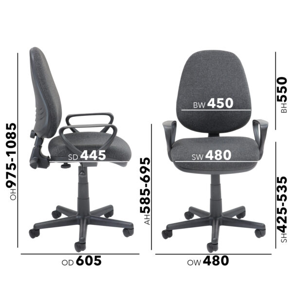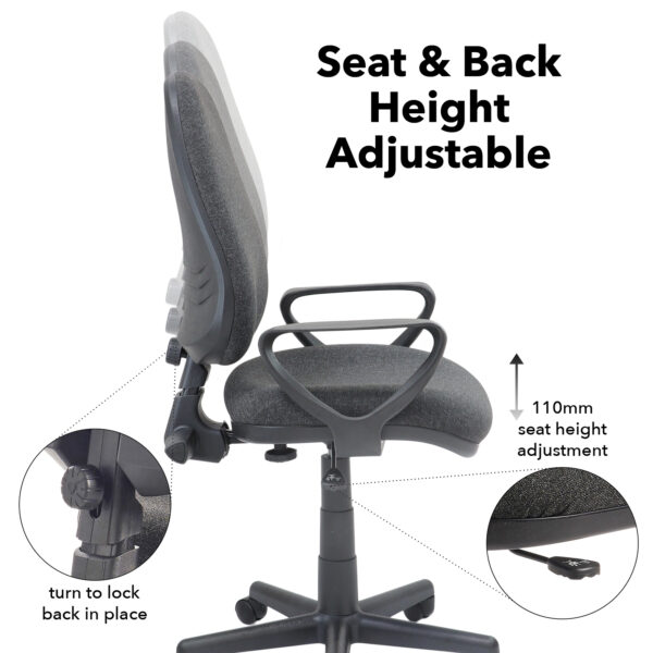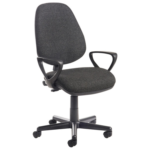 Bilbao is a versatile entry-level operator chair designed to deliver personalised support and comfort throughout the workday. Its free-floating back adapts to individual posture and body type, while the gas lift, tilt mechanism, and back height adjustment allow for easy customisation. The high-back design promotes ergonomic alignment, and the waterfall seat edge helps reduce pressure on the legs. Bilbao is available in blue or charcoal fabric finishes, with a choice of no arms, fixed arms, or height-adjustable arms to suit different workspace needs