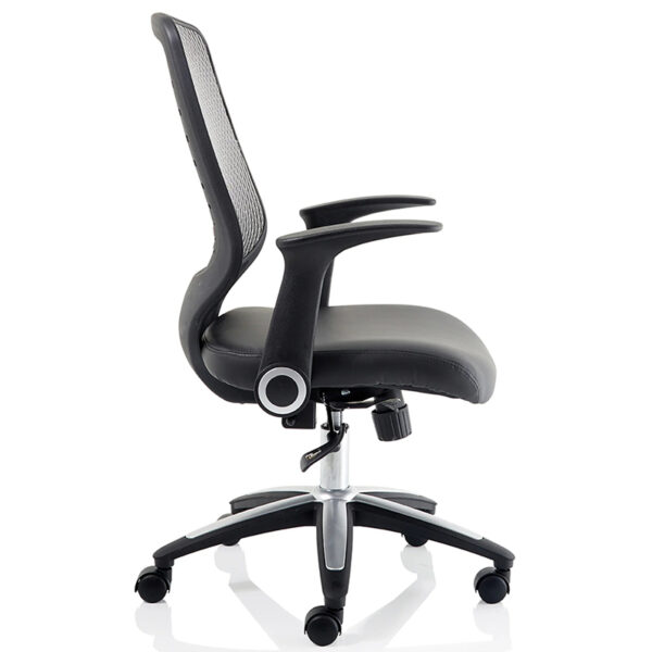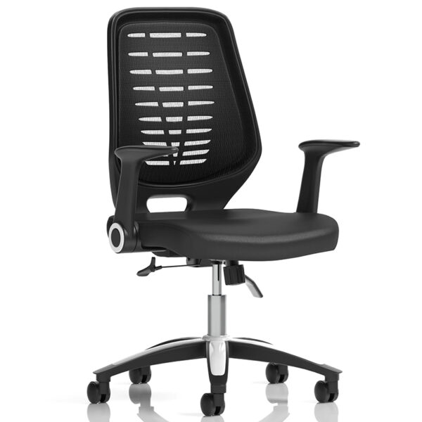 A long-standing favourite in modern office settings, the Relay combines sleek styling with practical comfort. Its silver or chrome-accented base and gas lift create a polished foundation, while the folding armrests make for effortless adaptability. The ventilated mesh backrest—available in black or silver—promotes airflow to help you stay cool and focused. With a premium faux leather-padded seat, soft breathable mesh, and subtle accent options, it’s a versatile choice for any workspace. Built-in weight tension control enhances support throughout the day, making the Relay both stylish and functional.