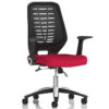 The Relay Mesh Chair blends sleek silver styling with ergonomic comfort, making it a versatile choice for modern workspaces. Its breathable mesh back promotes airflow, while the bespoke fabric seat offers tailored support. Folding arms provide flexibility for desk access or compact storage, and the chair’s tilt and height controls ensure a personalised fit throughout the day