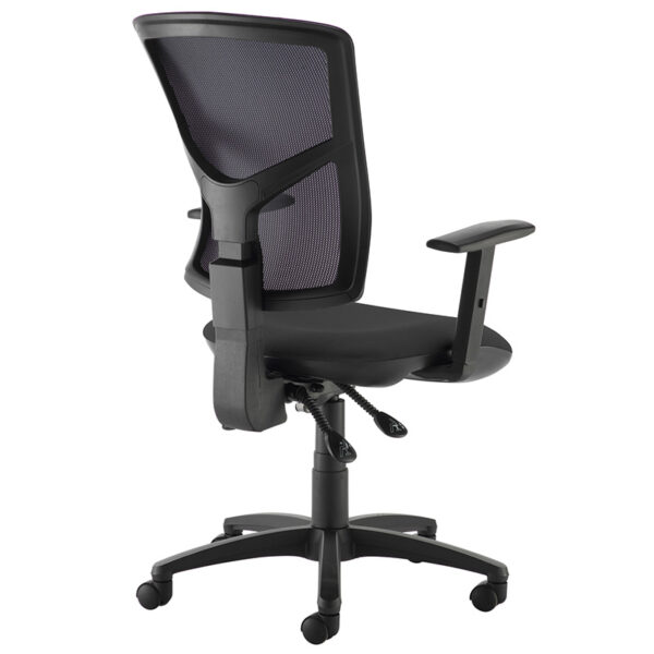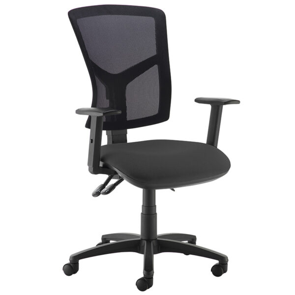 The Senza High Mesh Back Operator Chair offers a smart balance of comfort, reliability and affordability. Designed for long hours at the desk, its ergonomic profile includes a breathable mesh back and upholstered seat for lasting support. The chair features an asynchro mechanism with free-floating back action and lockable seat and back positions, allowing users to adjust posture throughout the day. A ratchet back height and gas lift adjustment provide tailored comfort, while CMHR high-resilience foam enhances seating flexibility. Available in four stocked fabric colours—Black and Blue—the Senza chair is ideal for modern workspaces. This version comes without arms, with optional fixed or adjustable arms available separately.