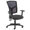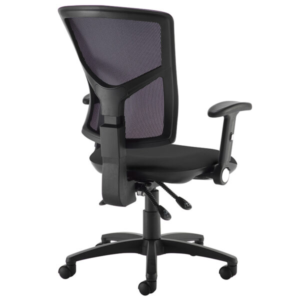 The Senza High Mesh Back Operator Chair offers a smart balance of comfort, reliability and affordability. Designed for long hours at the desk, its ergonomic profile includes a breathable mesh back and upholstered seat for lasting support. The chair features an asynchro mechanism with free-floating back action and lockable seat and back positions, allowing users to adjust posture throughout the day. A ratchet back height and gas lift adjustment provide tailored comfort, while CMHR high-resilience foam enhances seating flexibility. Available in four stocked fabric colours—Black and Blue—the Senza chair is ideal for modern workspaces. This version comes without arms, with optional fixed or adjustable arms available separately.