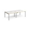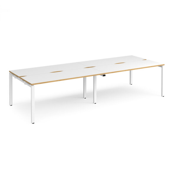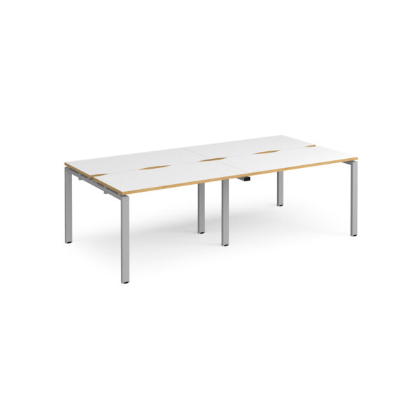 Featuring a robust steel subframe and sleek bench tops that create a floating effect, the Connect II Bench Desks deliver a clean, minimal aesthetic ideal for modern workplaces. The double back-to-back configuration includes shared desk legs, providing a cost-effective, practical, and visually appealing solution for high-density office settings. With a 1200mm depth, these desks balance space efficiency and functionality, making them a standout choice for contemporary office environments.