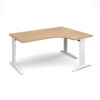 Its corner configuration maximizes space efficiency, providing ample surface area and a modern aesthetic, making it a popular choice for a wide range of office projects and environments.
