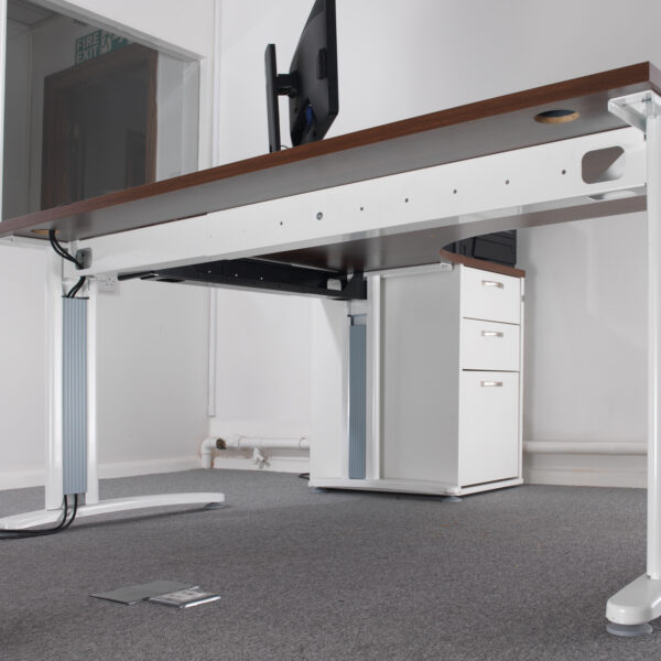 The innovative cantilever leg frame features integrated cable management, allowing users to neatly conceal and route wires through the leg structure. This helps to maintain a tidy workspace by keeping cables off the floor, reducing trip hazards, and enhancing the overall aesthetic. Ideal for creating efficient and organized workstations, the Lillo Left Hand Wave Desk balances form and function with ease.