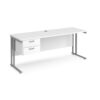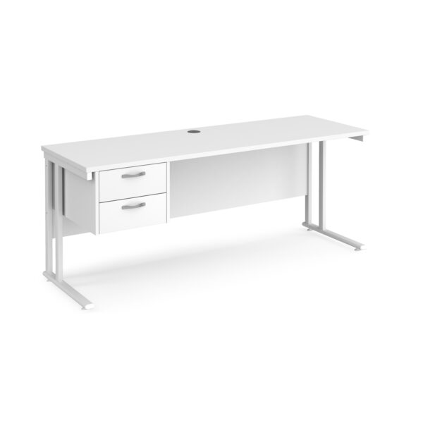 A reliable and refined choice for modern workspaces, the Porto 25 Straight Desk combines contemporary styling with practical functionality. Featuring a 600mm deep, 25mm thick melamine desktop, this desk offers a sturdy and spacious surface suitable for daily use. The welded double upright cantilever leg frame is powder-coated for a sleek finish and ensures excellent strength and stability. A single 2-drawer pedestal provides convenient storage for essential office supplies, helping to maintain a tidy and efficient work area. With a variety of colour options available, the Porto 25 desk fits seamlessly into any professional environment.