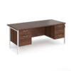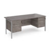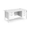 A staple for the modern office, the Porto 25 desk range combines clean, minimal styling with a variety of colour options to suit any workspace. The fully welded H-frame leg design offers exceptional strength and stability, available in black, silver, or white finishes that complement the durable 25mm melamine desktop. Featuring both 2 and 3 drawer pedestals, this desk provides versatile storage solutions while maintaining a sleek, coordinated appearance.