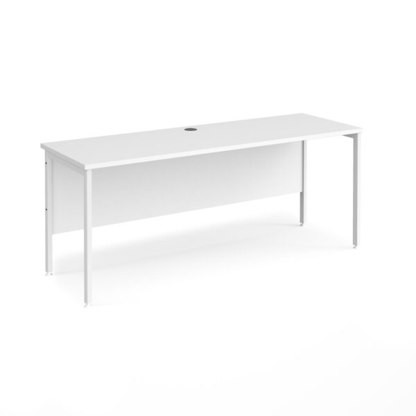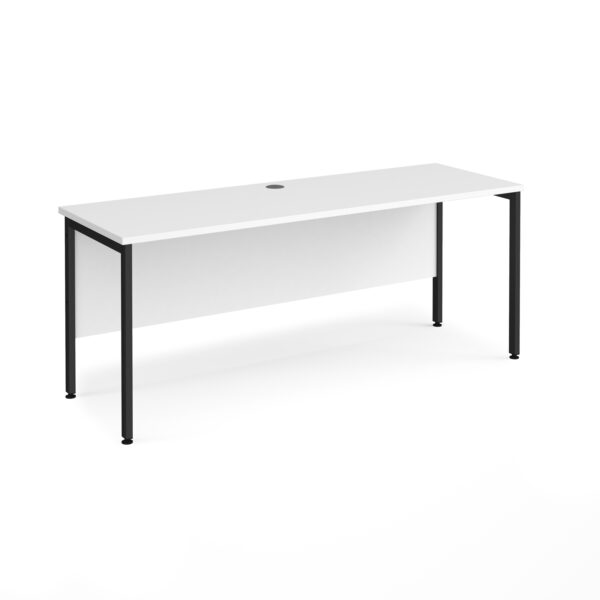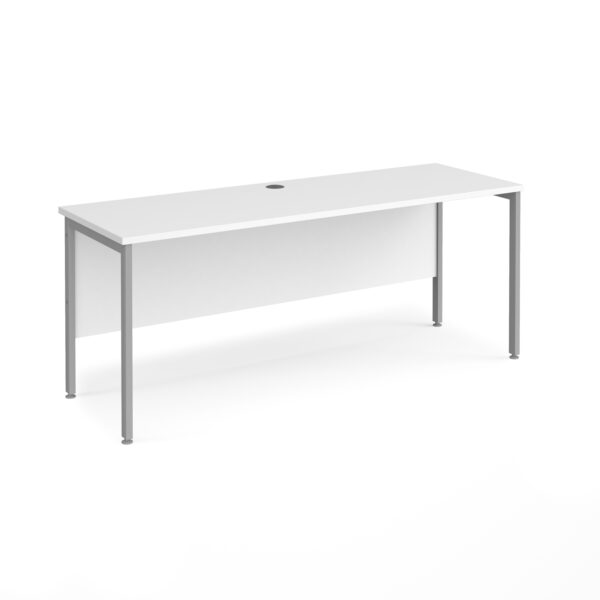 A staple in modern office design, the Porto 25 desk range combines minimalist style with practical durability. Its fully welded H-frame legs offer strength and stability, available in black, silver, or white finishes to complement the 25mm melamine desktops. The 600mm depth provides a sleek, space-efficient workstation without compromising functionality.
