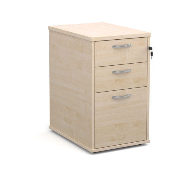 Keep your workspace organised with our Universal 3 Drawer Pedestal, designed for both under-desk and desk-side storage. Featuring clean lines, silver handles, and a modern minimalist look, this pedestal blends seamlessly into any office. Available in several wood finishes to match all desking ranges, it offers a versatile and practical solution for everyday office storage.