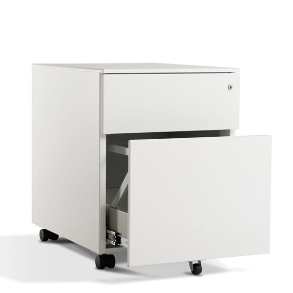 The Form 2 Drawer Pedestal is a high-quality Italian design, engineered to work seamlessly with height-adjustable desks without the risk of collision. Featuring soft-close, lockable drawers, an anti-tilt mechanism, and a ball-bearing runner system, it ensures smooth and safe daily use. Built with lockable castors, an internal stationery tray, and a durable surface finish, combines style with reliability.