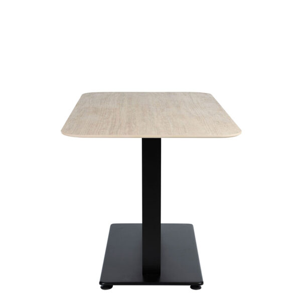 The premium surface is supported by the sleek square Anzio base, constructed from rust-proof aluminium with a durable black powder-coated finish. Integrated adjustable feet ensure stability on uneven surfaces, making it perfect for alfresco dining or outdoor terraces. Its modern, minimalist design complements a wide range of commercial interiors while delivering contract-grade strength and resilience.
