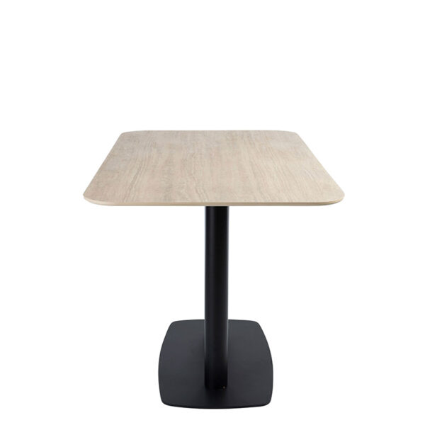 The beautifully textured Beige Travertine finish delivers the sophisticated appearance of natural limestone, complete with 100mm radius corners and a chamfered edge profile, without the expense or maintenance associated with stone. The slimline 12mm table top is engineered for commercial performance, offering exceptional resistance to moisture, UV exposure, heat, and stains — making it ideal for restaurants, cafés, hotels, and other high-traffic indoor dining environments.