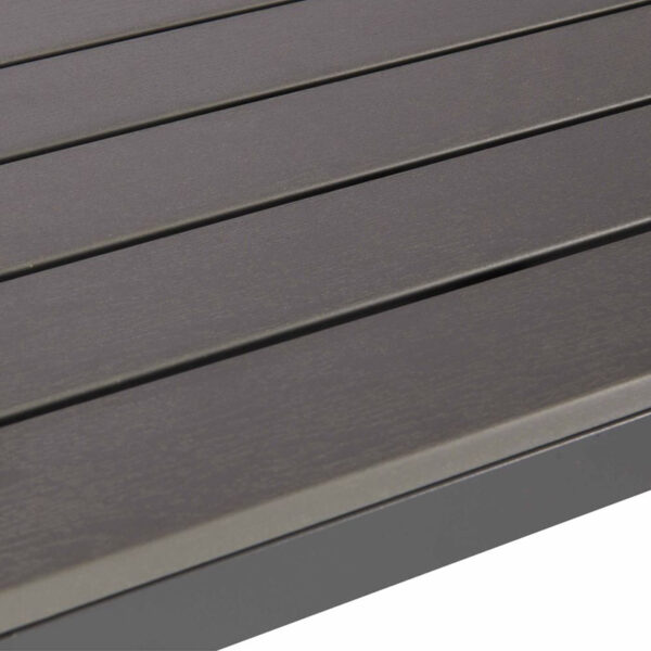 It features a sophisticated slatted tabletop that enhances visual appeal while promoting a refined outdoor aesthetic. Supported by a strong EPC aluminium frame, the table delivers excellent durability and long-lasting stability.
