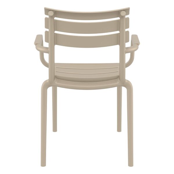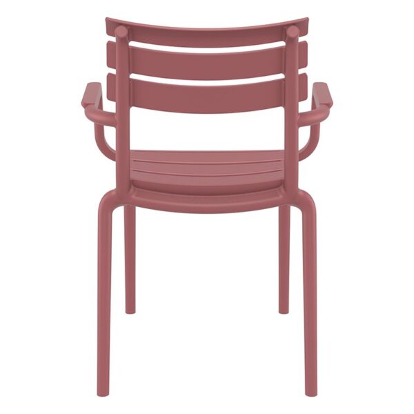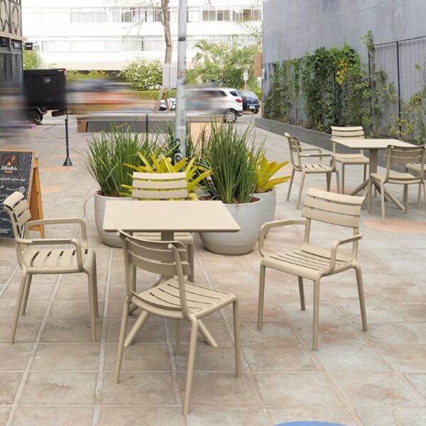 Designed for outdoor durability, the EcoRelax Arm Chair features UV-protected materials to ensure colours remain fade-resistant even in harsh weather. The slatted seat and back provide comfort while complementing its contemporary aesthetic, and the easy-to-clean surface makes maintenance effortless. Combining practicality, resilience, and style, the EcoRelax Outdoor Stacking Arm Chair is ideal for cafés, restaurants, and hospitality spaces.