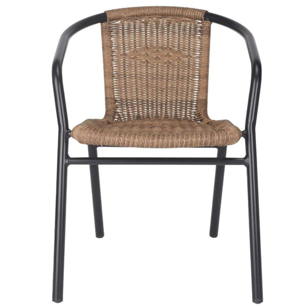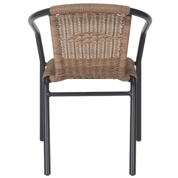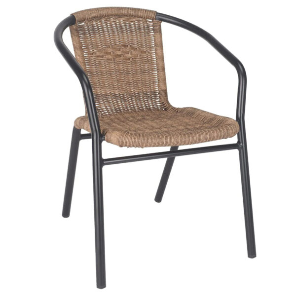 Stacking Brown Wicker Arm Chair with Black Aluminium Frame