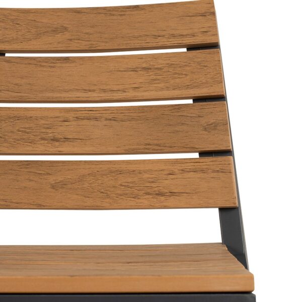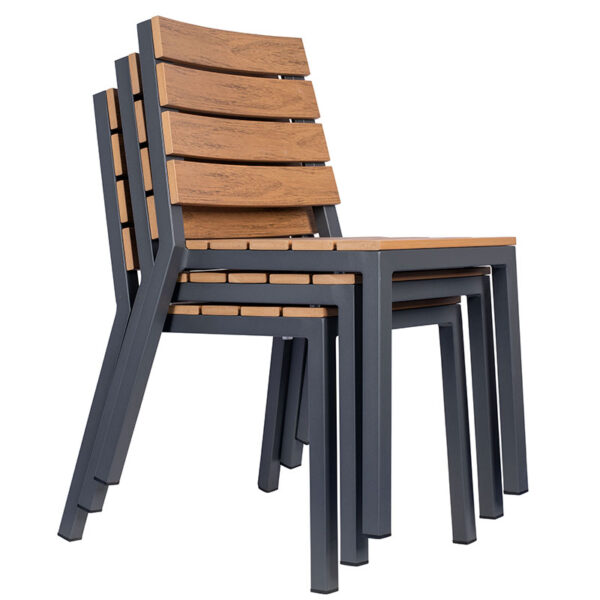 Enhance your outdoor dining area with the Brown Slatted Wood Effect Outdoor Side Chair. Featuring a horizontal slat back and a sleek, minimalistic frame, this stylish chair adds contemporary elegance to any hospitality setting, from hotels and cafés to restaurants.